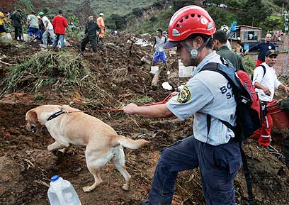 נעזרים בכלבים למציאת ניצולים במדיין, היום (צילום:רויטרס)