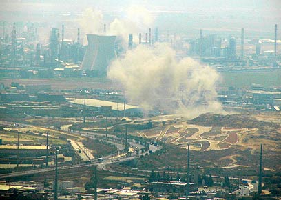 מטחי רקטות על מפרץ חיפה במלחמת לבנון השנייה (צילום: מונט גלפז)