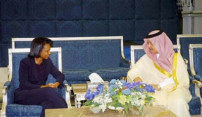 השר הסעודי אל-פייסל עם מזכירת המדינה דאז רייס (צילום: AFP)