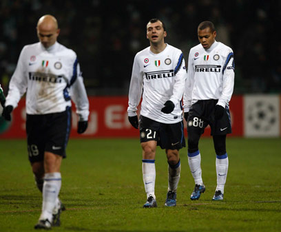 נ-רע-זורי. אחרי שניצחה פעם אחת בששת המחזורים האחרונים בסרייה A והתרחקה עד כדי עשר נקודות מהיריבה השנואה מילאן, ספגה אמש אינטר את הפסדה השני ברציפות בליגה האלופות, וזה לא היה סתם הפסד - אלופת אירופה הובסה 3:0 בוזרשטדיון של ורדר ברמן וסיימה כסגניתה של טוטנהאם בבית 1.