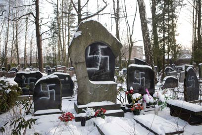 אנטישמיות בבית העלמין: אלמונים ריססו צלבי קרס על כ-100 מצבות בבית הקברות היהודי בריגה, בירת לטביה. "גילינו צלבי קרס שרוססו בצבע לבן על עשרות מצבות בית הקברות היהודי. המשטרה פתחה בחקירה וסגרה את המקום עד לסיום איסוף הראיות", מסרה לווה רקסנה, דוברת המשטרה.