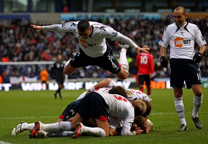 שחקני בולטון חוגגים את הניצחון המתוק על בלקבורן (גטי אימג'ס)