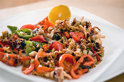 ראשי קלמרי מוקפצים עם ירקות (צילום: ירון ברנר)