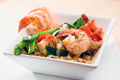 שרימפס מוקפץ עם שמן זית וירקות (צילום: ירון ברנר)