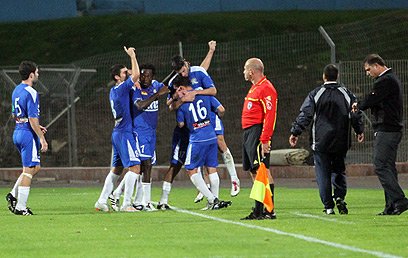 יוסי אסייג חוגג. החזיר במו רגליו את נס ציונה למשחק (אורן אהרוני)
