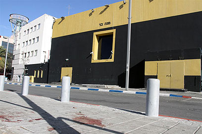 כתמי הדם של הנדקר מחוץ למועדון בתל אביב (צילום: עופר עמרם)