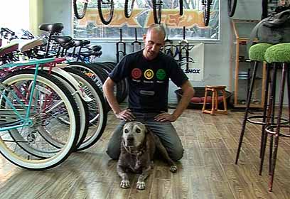 מייקל קסרזון ונימורה בחנות האופניים (צילום: רועי גזית)