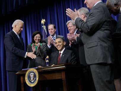 השמאל זעם, הימין שמח. אובמה חותם על חוק ההקלות במס (צילום: AP)