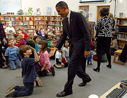 בין הצבעה להצבעה מצא אובמה זמן למפגש עם ילדים (צילום: רויטרס)