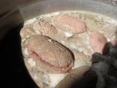 בסוף הגיע הזמן לטעום כמה ביצים. אנחנו, השופטים, היינו נרגשים ושיכורים. כל התבשילים הונחו לפנינו על שולחן ארוך שתפס כמעט את כל המקום באוהל צר מאוד. דידינו סביב עם מזלגות פלסטיק בידינו, טועמים מכל מנה ומדרגים אותה על טעם ועל הגשה.