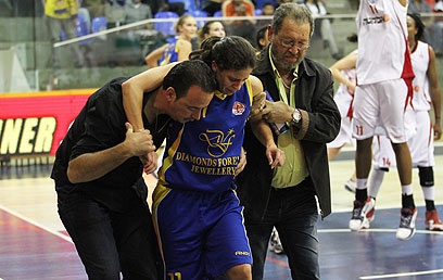 נעמי קולודני יורדת פצועה לחדר ההלבשה (צילום: אורן אהרוני)