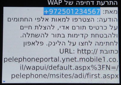 תוכן ההודעה שתתקבל ב-SMS (צילום: דבורה שרר)