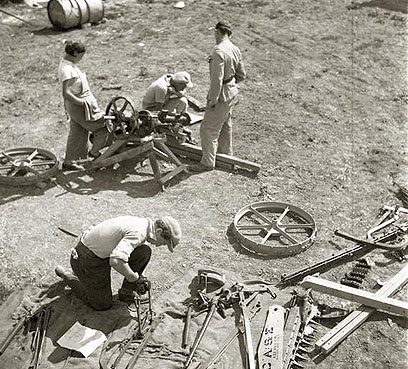 8. הגיע קומביין CASE לקיבוץ. הוא הגיע בארגז מעבר לים, מפורק לחלקים והיה צריך להרכיבו