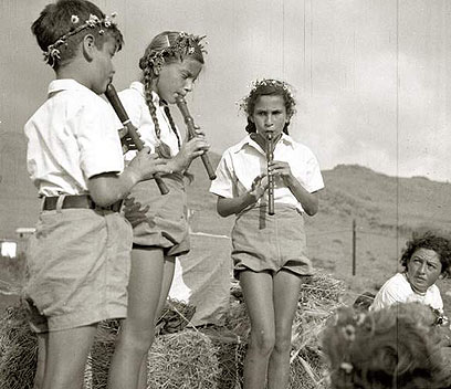 15. מימין: המורה שולה גולן, בחלילים: דבורה עמלי, רחל שניר, גבי בן אשר