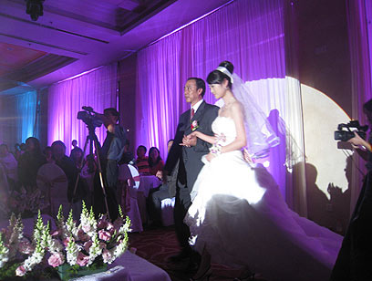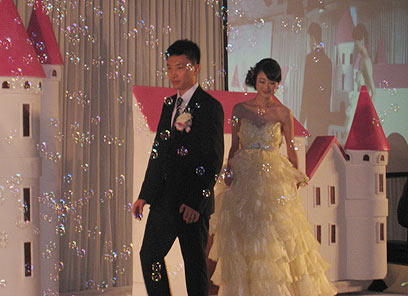 לאחר מכן הצטלמו השניים בסטודיו ונסעו לבילוי וצילומי חוץ על החוף באי סאן-יה. הם בילו מעין שבוע דבש, הצטלמו בסדרת תמונות של חתן-כלה, וכך הכינו חלק מהתוכנית האמנותית לאירוע השיא: חתונה עם 200 מוזמנים במלון חמישה כוכבים, בשדרת צ'אנגן,"קו האמצע" של בייג'ינג, השדרה האימפריאלית שלמדה משהו מפאריז והגדילה ראש.