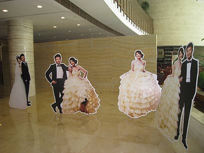 הזמן: יום שישי, 10:00. התפאורה: סון ז'ה והו צ'ן, שמבינים בעיצוב, הציבו בכניסה דמויות מצולמות של עצמם בגודל טבעי, גזורות ומודבקות על קרטון קשיח. התמונות נבחרו מתוך אלו שצולמו מבעוד מועד בשבוע הדבש, ללמדנו שהסדר המערבי המוכר לנו הוא לא קדוש ולא הכי יעיל או חכם.