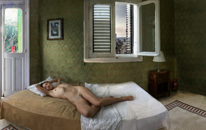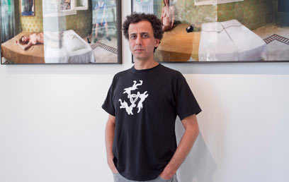 "כבר זמן רב שאני מתרגל טכניקות של זכרון מתוך החללים עצמם", הוא מסביר. "התמכרתי להתבוננות הזאת בחלל. אני מצלם בנפרד את חלקי החדר ולאט לאט אני בונה את החלל. זו המחשה של תהליך שלב הזכירה. אני שומר בזכרון את פיסות הצילום ואז בונה את זה, שכבה על שכבה. חפץ, כורסה או דמות. יש פה המון אפשרויות".
