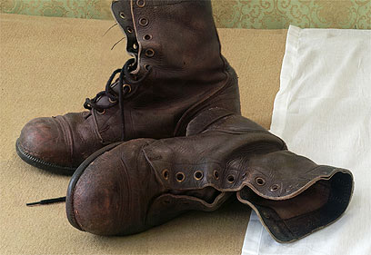 הנעליים הצבאיות על רצפת חדר המלון המאולתר