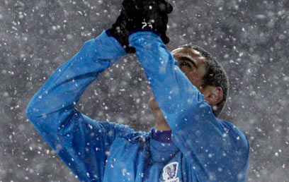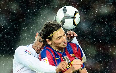 "רטוב על הדשא". לז'וזה מוריניו לא מפריעות הממטרות של הקאמפ נואו, כשהוא חולף על בארסה בדרך לגמר ליגת האלופות.