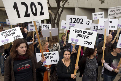 עשרות נשים מפגינות מחוץ לביהמ"ש. "האמון חודש" (צילום: רויטרס)