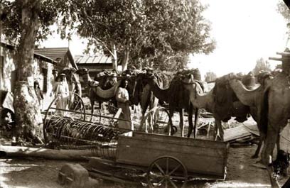 10. מראה של המושבה החקלאית חדרה: גמלים, עגלות ומגוב