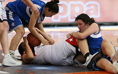 המאבק על הפרקט בבית מכבי בראשון לציון (צילום: יועד כהן)