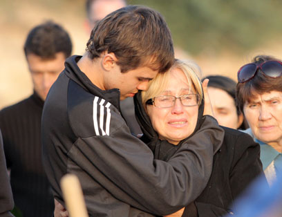 דמיטרי מנחם את אמו בהלווית אחיו ובנה (צילום: אורן אהרוני)