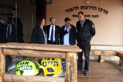 הקסדות לזכר הכבאים. הוריו של דני חייט במגדל העמק (צילום: חגי אהרון)