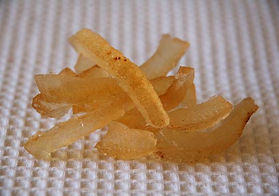 שלב הניסוי: טעמן של קליפות הלימונים המסוכרות מתוחכם ומצויין, מרירותן עדינה מאוד. מתאימות מאוד לשילוב בעוגות בחושות (עוגת לימונים, תפוזים, עוגה אנגלית וכו'), אך כדאי לקמחן קלות, כדי שלא תשקענה מטה בעוגה.
