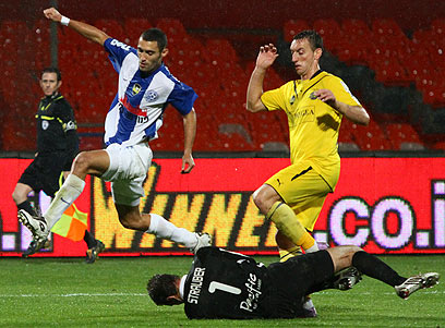 עומר גולן, בדרך לשער של מכבי תל אביב - ולגמר (צילום: אלי אלגרט)