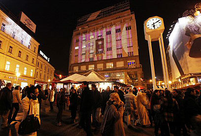 ההמונים מתכנסים בכיכר העיר זאגרב ופוגשים זברה על הקיר (רויטרס)