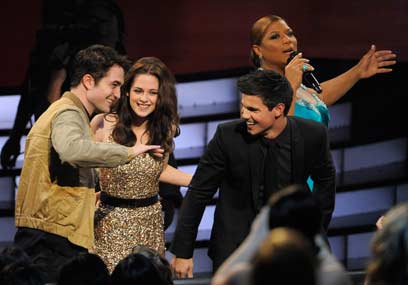 מנחת הערב, קווין לטיפה, עם שלישיית זוכי "דמדומים" (צילום: AP)