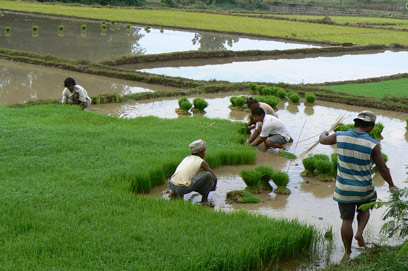 הכפריים מגדלים אורז פעמיים בשנה. פועלים בשדות האורז