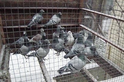 "אימונים. הן חיות בלול הזה מהביצה עד הקבר. כשהן רק לומדות לעוף, אנחנו נותנים להן לעשות סיבוב סביב לבלוק. כשהן מתבגרות, לוקחים אותן פעם בשבוע באוטו לרובעים אחרים ונותנים להן למצוא את הדרך חזרה לבד,כל שבוע רחוק יותר. אלו שלא נהרגו או הלכו לאיבוד בדרך מוכנות להתחרות כעבור שנה".