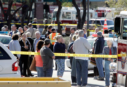 זירת הרצח בטוסון. גיפורדס הספיקה לצייץ שעה לפני הירי (צילום: AP)