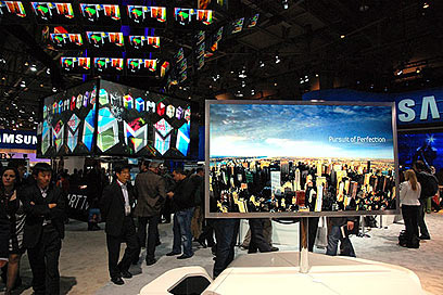 בכל שנה, מתחרות חברות האלקטרוניקה על תשומת הלב של התקשורת והמבקרים. איך עושים את זה? מציגים טלוויזיות בגודל ובעיצוב מוגזמים. השנה, זכתה סמסונג בפרס "הכי גדול והכי מיותר", עם מסך LED תלת ממד בגודל של 75 אינץ'. המסך דקיק וגופו בוהק ומתכתי, וככל הנראה שכמה ראפרים וכדורגלנים כבר מפנים עבורה מקום בסלון.