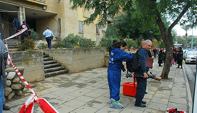 שוטרים אוספים ממצאים מזירת האירוע בבאר שבע (צילום: הרצל יוסף)