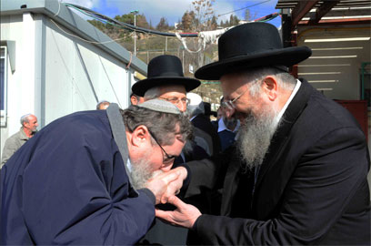 כצ'לה מנשק את ידי הרב אליהו (צילום: אביהו שפירא)