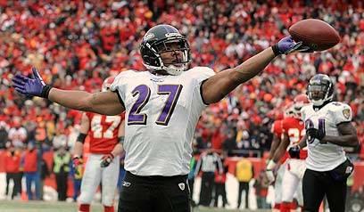 ריי רייס והרייבנס חוגגים מול הצ'יפס בארווהד (רויטרס)