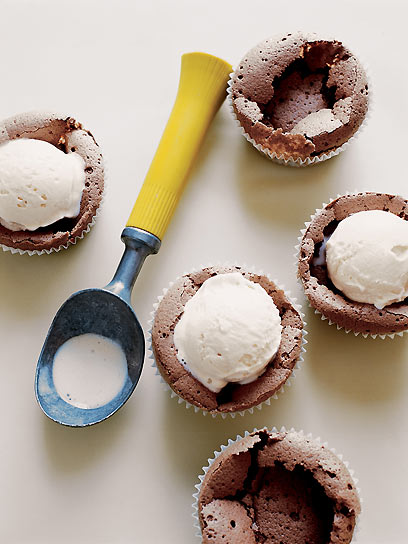 פני הקאפקייקס שלהלן תופחים בעת האפייה ולאחריה "נופלים", כך שהן אידיאליות לתוספת כדור גלידה במרכזן. את מקום הקמח או חומרי ההתפחה המקובלים מחליפים כאן חלבוני ביצה מוקצפים, היוצרים עוגות קלילות כאוויר