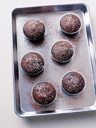 - מפזרים אבקת קקאו ואבקת סוכר על פני הקאפקייקס לפני ההגשה.