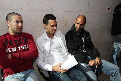 שחקני הפועל ת"א בביהמ"ש. "מקווים שהכל יסתדר" (צילום: עופר עמרם)
