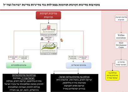 בארגון טוענים כי "כסף ערבי מממן ארגונים הפועלים ליצירת דה-לגיטימציה למדינת ישראל, קריאות לחרם על מדינת ישראל, קריאה וסיוע להעמדת בכירים במדינת ישראל לדין על ביצוע פשעי מלחמה, חיזוק הזהות הפלסטינית של ערביי ישראל וניתוק זיקתם למדינת ישראל, חיזוק הזהות והאחיזה הפלסטינית-איסלאמית בירושלים, חיפה, יפו, הנגב והגליל".