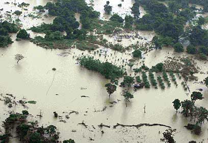 כפרים שלמים כוסו במים. נזקי השטפונות בסרי לנקה (צילום: AFP)