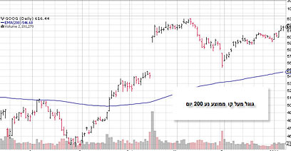 כדי להמחיש את תנועת 200 היום לקחתי את מניית גוגל, סימבול Goog, במשך שלוש השנים האחרונות: