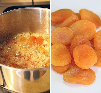 בזמן שהבסיס נאפה, זה הזמן להכין את המלית. בסיר קטן מניחים את המשמש המיובש, דבש, רום וסוכר. מוסיפים מים ומבשלים למשך כ-45 דקות, עד שמרבית הנוזלים מצטמצמים, והמשמש מתרכך מאוד.