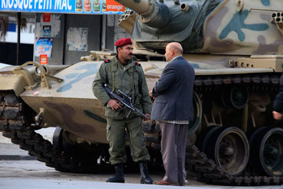 איש ביטחון תוניסאי ואזרח. הכאוס מורגש היטב ברחובות (צילום: רויטרס)