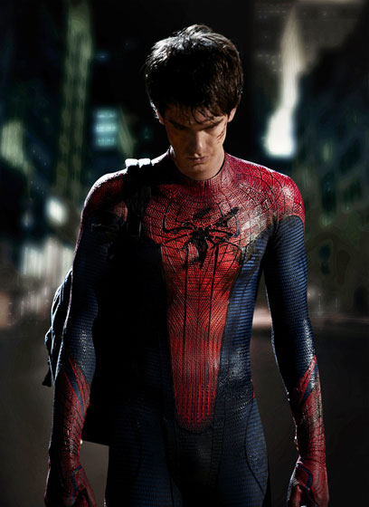בגדי ספיידרמן החדשים: לא מזמן אמר אנדרו גארפילד שנבחר לגלם את פיטר פארקר בגרסת התלת ממד של מארק ווב לעלילות איש העכביש, שהוא מרגיש נוח בחליפה האדומה כחולה כאילו היתה פיג'מה חמימה. בתמונה חדשה מהסרט ניתן לראות אותו לובש אותה ונראה אפלולי למדיי.