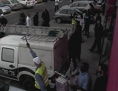 הירי באוויר - מתוך צילומי האבטחה. "השכיבו עובד על הרצפה"