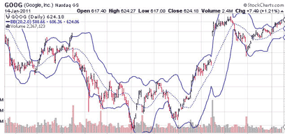 הרצועה העליונה והרצועה התחתונה נקראות בולינג'ר בנד; הן מסמלות את טווח המסחר על הגרף. ככל שרצועות אלו רחוקות אחת מהשנייה כך אנו יודעים שיש תנודתיות בשוק וסוחרים מרגישים בטוחים שהשוק נע בקצב הנורמלי שלו. כאשר הרצועות מתכווצות, אמן יודעים שסוחרים משהים את ביצוע העסקאות שלהם והם למעשה מחכים לאירוע מיוחד שצפוי לקרות. בחודש אפריל הייתה התכווצות של הרצועות, מיד לאחריה ניתן לצפות התרחבות ופעילות רגילה בשוק. במקרה זה, מדד הפחד עלה, סימן שהסוחרים פחדו מאוד משוק יורד והם קנו הגנות. הכוונה לקניית אופציות על מניות מסויימות שברשותם. מדד הפחד מתנהג כמו המשקיעים. כאשר משקיעים פוחדים משוק יורד, הם קונים אופציות מכל סוג ומדד הפחד עולה. בחודש אפריל בשנה שעברה הייתה תקופה של כמה שבועות שמדד הפחד היה בסביבות 15$ ואז בבת אחת הוא קפץ והשוק ירד. אין כאן רצון להפחיד אף אחד אלא רק להעיר את תשומת ליבכם למדד הזה שמשקף את פעילות הסוחרים בשוק.